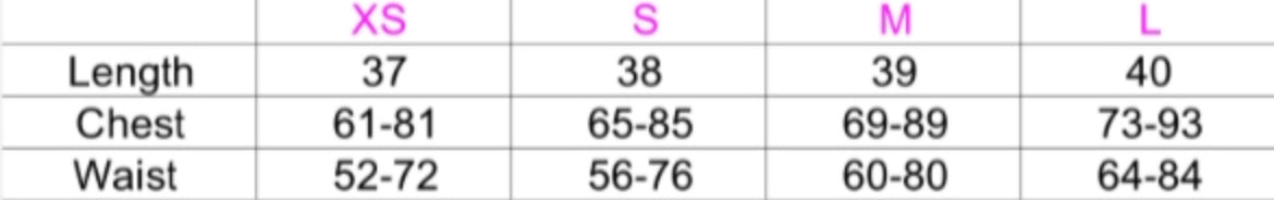 Sizing Model is 173cm and is wearing size XS. Product is designed as a tight fit, we recommend selecting your natural size or a one size bigger for a looser fit. |